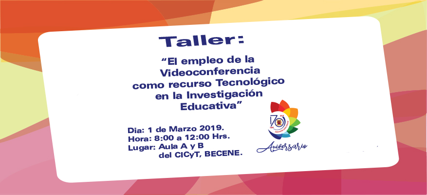 "La Benemérita y Centenaria Escuela Normal del Estado en el marco de su 170 Aniversario, invita a la comunidad normalista al Taller: “El empleo de la Videoconferencia como recurso Tecnológico en la Investigación Educativa”, se llevará a cabo el día 1 de marzo de 2019 en un horario de 8:00 a 12:00 hrs. En el Aula A y B del CICyT, cupo limitado de 15 participantes por grupo."